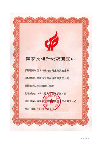 東吳機械是國家級高新技術企業,是蘇州市安全閥工程技術研究中心,全國第一批擁有機電部安全閥生產許可證的單位,同時也是中國通用機械工業協會閥門分會和中國核能行業會員單位,具有中國石油天然氣集團公司物質供應商準入證,是中核集團合格供應商。連續多年被評為蘇州市“重合同、守信用”企業,我司生產的彈簧式安全閥榮獲江蘇省名牌產品稱號,2004年10月,被江蘇省蘇州市工商行政管理局認定為免檢企業;2006年和2011年分別獲得國家火炬項目證書。2012年09月,因在超(超)臨界火電機組關鍵閥門國產化工作中做出了重要貢獻,獲國家能源局表彰;2013年12月榮獲江蘇省著名商標稱號。公司注重構建和諧的勞動關系,連續多年榮獲蘇州市勞動關系和諧企業稱號和榮獲蘇州市勞動保障A級誠信單位,2017年11月,榮獲上海市科學技術進步一等獎。